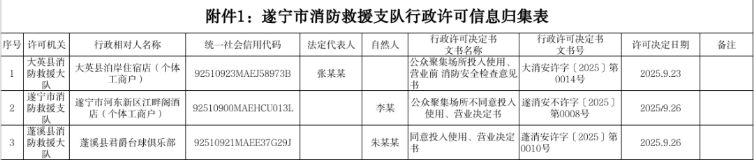 为进一步规范消防监督执法行为,提高消防监督执法工作的透明度,保障公民的知情权、参与权、表达权、监督权,推动便民利民措施落实,依据《四川省消防救援机构消防执法公示》,遂宁支队对9月22日至9月26日的消防行政许可、行政处罚情况公示如下:
