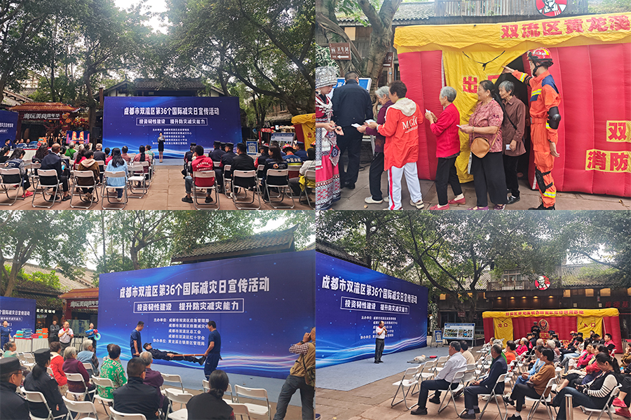 近日,成都市消防救援支队双流大队联合多部门在辖区黄龙溪镇市井印象广场组织开展第36个国际减灾日宣传活动。