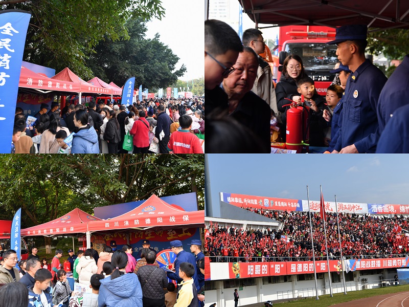 11月23日下午,四川省城市足球联赛小组赛最后一战在德阳市体育场内燃情上演,赛场内欢呼声此起彼伏,赛场外德阳消防借势川超比赛契机,持续开展“足球盛宴 安全同行”主题消防宣传活动,掀起消防宣传月活动热潮。