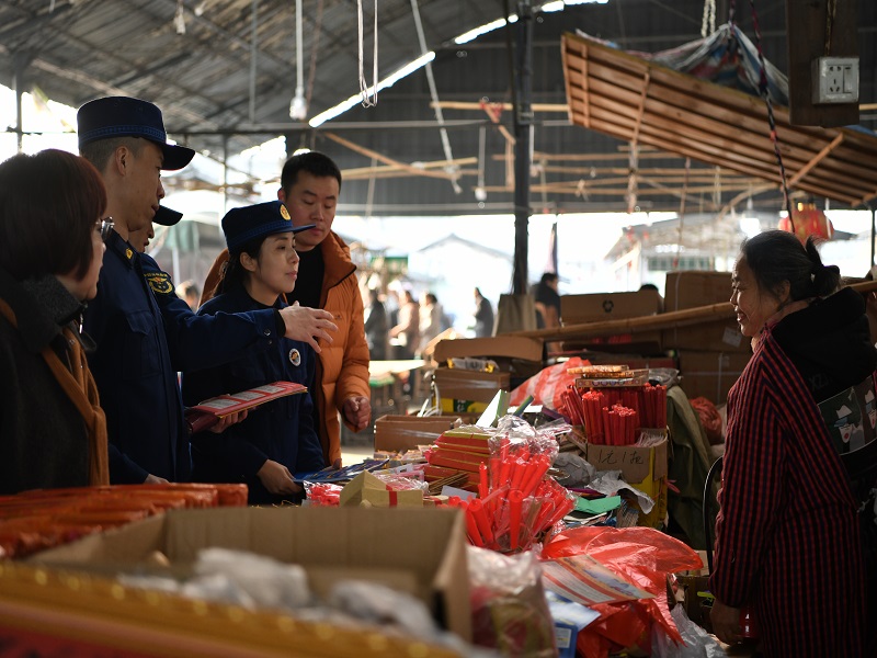 正值乡镇赶集日,集市上人头攒动,大家聚集在摊位前激烈讨论着。“油锅起火时先关火,再盖锅盖,手边有菜就倒菜入锅。”“家中堆放的柴草要做好管控,小孩子不要随意玩火。”涉及到的都是日常生活中的消防安全知识,消防宣传员用接地气的语言,向过往赶集群众讲解家庭防火“三清三关”、发生火灾后如何逃生自救等知识。“临街下层商铺起火,先判断火势,上层居民不要轻易往楼道跑,容易吸入大量有毒气体。”“平时楼道不要堆放纸板、快递盒,一定要注意门店和住宿区域的防火分隔。”针对乡镇集市中的“下店上宅、前店后宅”,宣传员重点普及了火灾逃生、杂物规范堆放等安全知识。