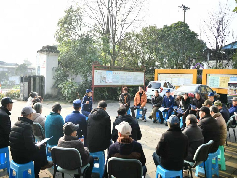 在集市集中宣传点,消防宣传车循环播放着火灾案例警示教育片和消防安全知识科普视频,现场村民认真学习着其中的火灾预防知识和逃生技巧。在村委会院子里,消防宣传员联合乡镇网格员、消防志愿者展开了一场别开生面的“院坝会”,发放农村防火宣传资料的同时用通俗易懂的语言向村民讲解冬季取暖设备安全知识,烤火炉、电热毯、插线板等电器设备应该如何正确安全地使用。