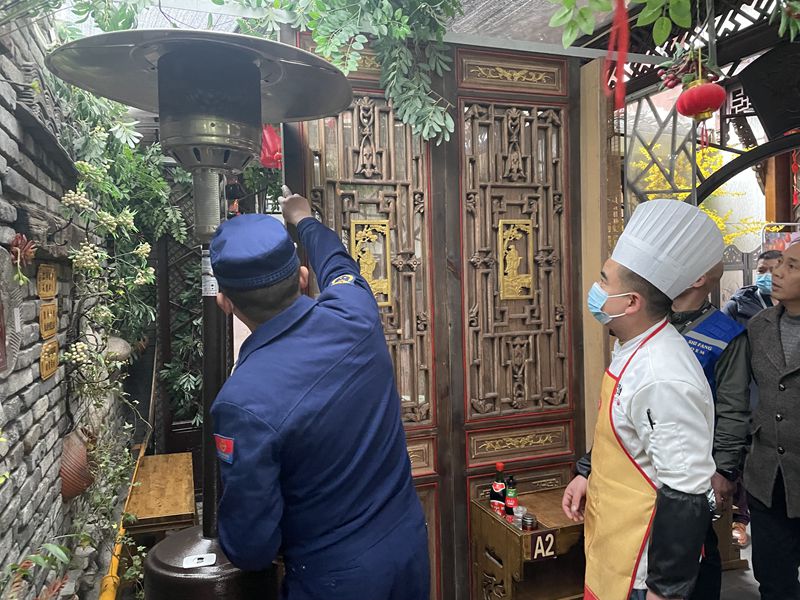 检查中,检查人员详细查看了各餐饮场所厨房灭火器配备是否充足且合格有效,安全出口指示标志、疏散指示标志配置、设置是否符合标准,是否按规定安全用火用电,有无乱搭乱接大功率插头和电线,是否定期对油烟管道进行清理,厨房内使用的燃气管路设置是否符合要求,燃气软管是否存在腐蚀、老化、泄漏现象。厨房工作人员是否经过消防安全知识培训等方面,针对现场发现的问题,检查人员随即向餐饮单位负责人提出了整改意见,要求其尽快将隐患整改到位。