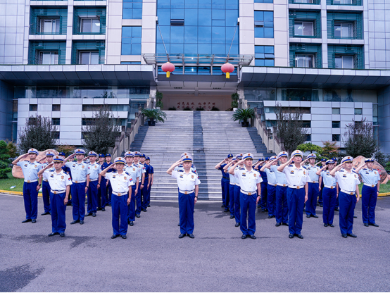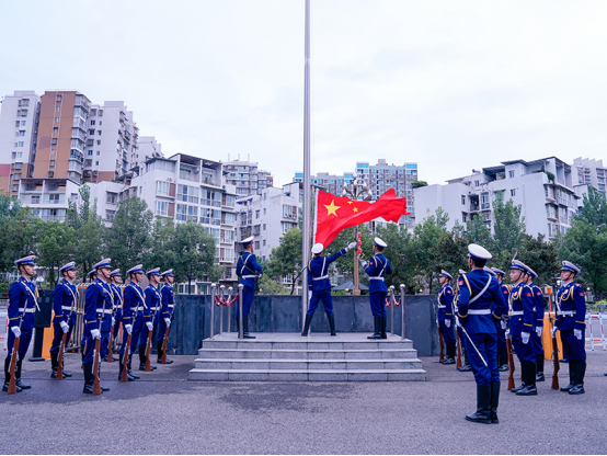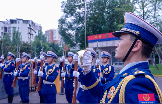 上午8时30分,全体指战员队容严整,精神振奋,整齐列队,护旗手迈着矫健的步伐护送国旗来到升旗台,伴随着雄壮的国歌声,五星红旗冉冉升起。全体指战员神情庄重,面向国旗肃立敬礼,他们坚毅的眼神和庄严的敬礼,充分表达了对党和人民的赤胆忠心,也寄托了对伟大祖国的由衷祝福。