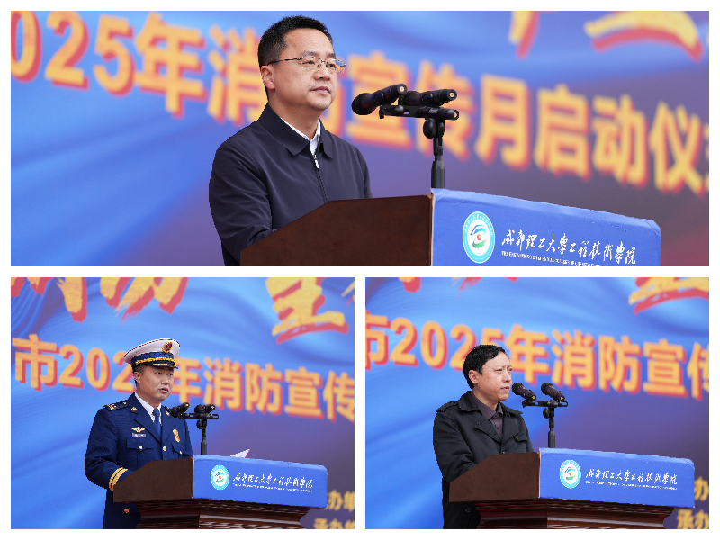 启动仪式由市消防救援支队支队长赵亮主持。成都理工大学工程技术学院党委副书记谭经伟致欢迎词,黄秀航常务副市长致辞并宣布乐山市2025年消防宣传月活动启动,乐山市第十九届大学生消防运动会开幕。