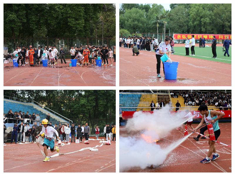 消防运动会共5个科目,分别是10×100米水枪连接接力赛、10×50米火场逃生技能接力赛、100米油盆灭火竞赛、10×50米障碍运水接力赛和1人3盘水带连接竞赛。运动会前,举行了升旗仪式,大学生、消防员分别表演了武术、舞蹈和400米救人疏散物资操等节目,赢得了高声喝彩和阵阵掌声。运动会中,运动员们弘扬“更高、更快、更强”的奥林匹克精神,“寓教于乐,寓学于赛”,真正让运动会成为普及、宣传消防安全知识的舞台。运动会后,乐山职业技术学院接过会旗,将成为下一届大学生消防运动会的承办单位。