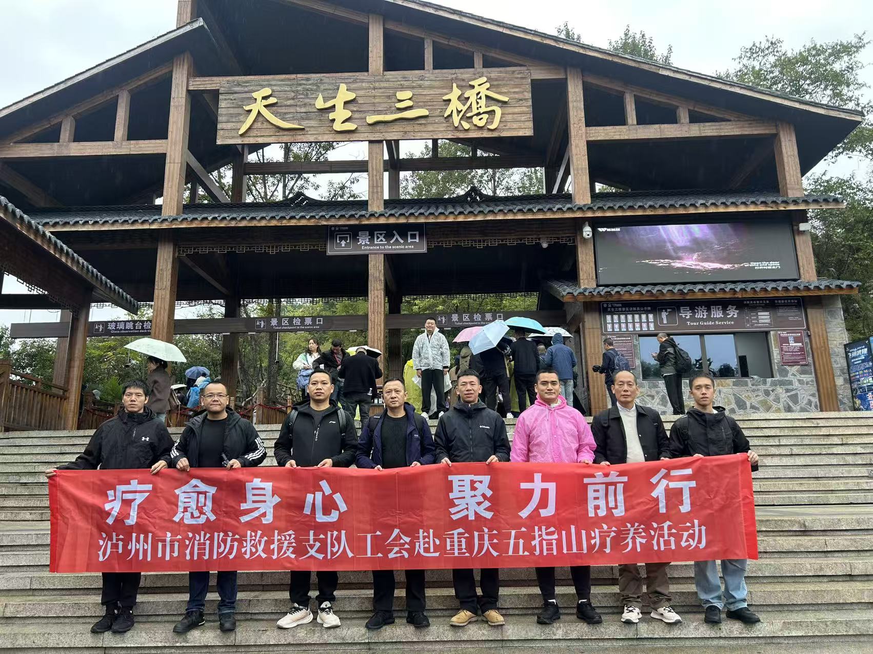 为切实关爱消防救援人员身心健康,缓解高强度执勤训练压力,进一步凝聚队伍向心力,近日,市总工会精心组织支队部分优秀指战员赴重庆五指山开展5天4晚疗养活动,让大家在自然休憩中放松身心,在交流互动中提振士气。