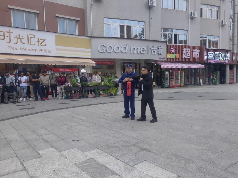 在理论培训环节,消防宣传员用通俗易懂的语言,采取交流互动、“面对面”宣讲等方式,向参训人员科普了火警电话“119”、如何正确报火警以及如何在发生火灾时进行逃生自救等常识,并对日常用火用电注意事项、电动自行车火灾防范等进行了提醒,讲解演示了逃生面罩、灭火器、室内消火栓等器材的使用方法。除此之外,学校老师还进行了专业的同声传译,实时将讲解的内容翻译成英语,确保信息准确传递。
