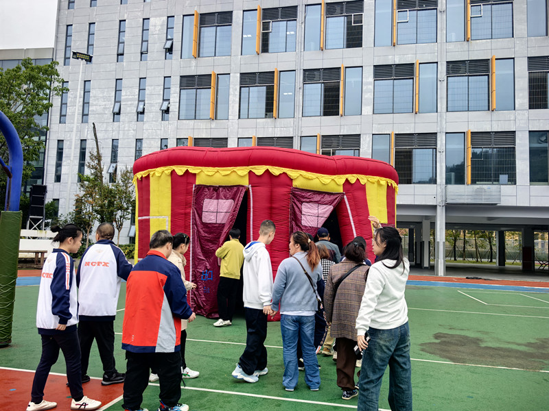 “发生火灾时不能乘坐电梯...”主席台上消防宣传员放慢着语速用通俗的语言讲解着消防常识,主席台的左侧,是跟随话筒声进行实时翻译的手语老师,她准确传达着注意事项,热情而耐心、亲和而温暖,时刻为台下的孩子们“递送”着新知识。消防宣传员通过一个个真实且触目惊心的火灾案例,讲解阐述火灾的严重危害、常见引发原因以及预防措施。示范讲解各类消防器材的使用方法、火灾发生时的逃生技巧等知识,让师生深刻认识到消防安全的重要性。在逃生帐篷体验区,同学们依次排队进入模拟火灾现场的帐篷。帐篷内烟雾弥漫、漆黑一片,还设置了各种障碍物。同学们在消防员的引导下,低姿前行,成功“逃生”。通过这次体验,大家深刻体会到了火灾发生时正确逃生的重要性。