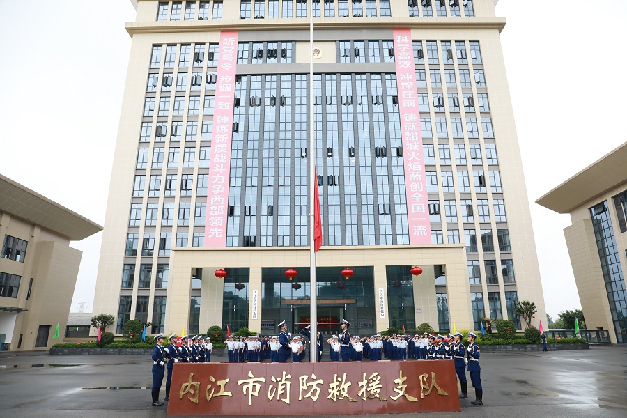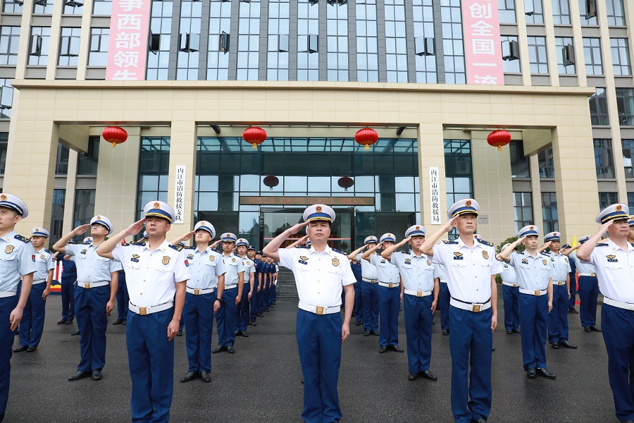 为热烈庆祝中华人民共和国成立76周年,进一步加强队伍建设,以更加昂扬的精神风貌迎接祖国的光辉节日,10月1日上午,内江消防隆重举行国庆节升旗仪式,支队机关值班及备勤干部、城区大队值班干部、战勤保障站、应急通信与车辆勤务站参加仪式。