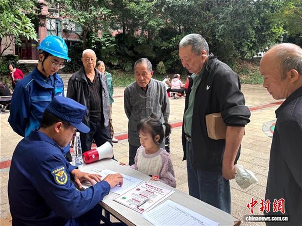 工作人员在社区开展免费安装烟感报警器宣讲工作。(资料图)攀枝花消防供图