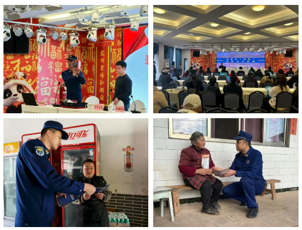 分区域精准宣教,筑牢基层安全防线。雨城大队组织人员深入乡镇开展“上门入户”宣传,向居民普及家庭防火、初期火灾扑救及逃生自救知识,同时借助短信平台推送警示信息,重点提醒居民熏制腊肉时做到用火不离人。名山大队聚焦沿街商铺、居民小区、农村院落等重点区域,通过发放手册、现场讲解、案例警示等方式,向群众普及火灾隐患排查、取暖设备规范使用等知识,杜绝违规用火用电行为。天全大队、荥经大队紧密结合农村火灾防控特点,深入乡村、社区发放宣传资料、开展现场演示,详细讲解冬季用火用电安全要点及逃生技巧,耐心解答群众疑问,全力提升农村群众和社区居民的自防自救能力。
